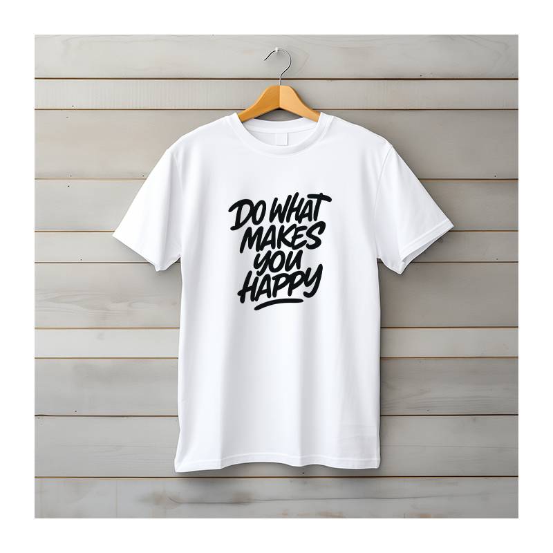 Unisex λευκό t-shirt με το μήνυμα "Do What Makes You Happy".