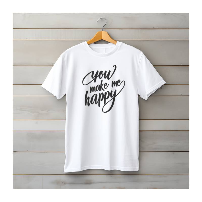 Unisex λευκό t-shirt με το μήνυμα "You Make Me Happy".