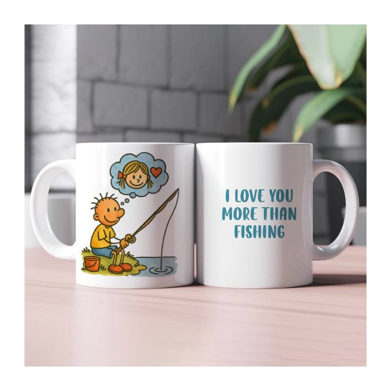 Λευκή κεραμική κούπα με το μήνυμα "I Love You More Than Fishing".