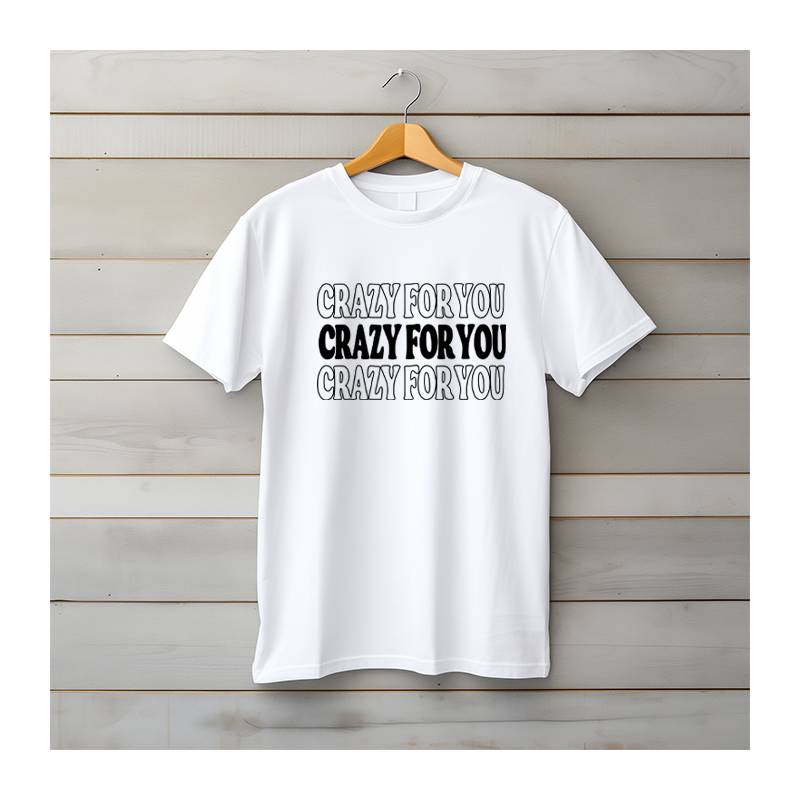 Unisex white t-shirt with the message "Crazy For You".