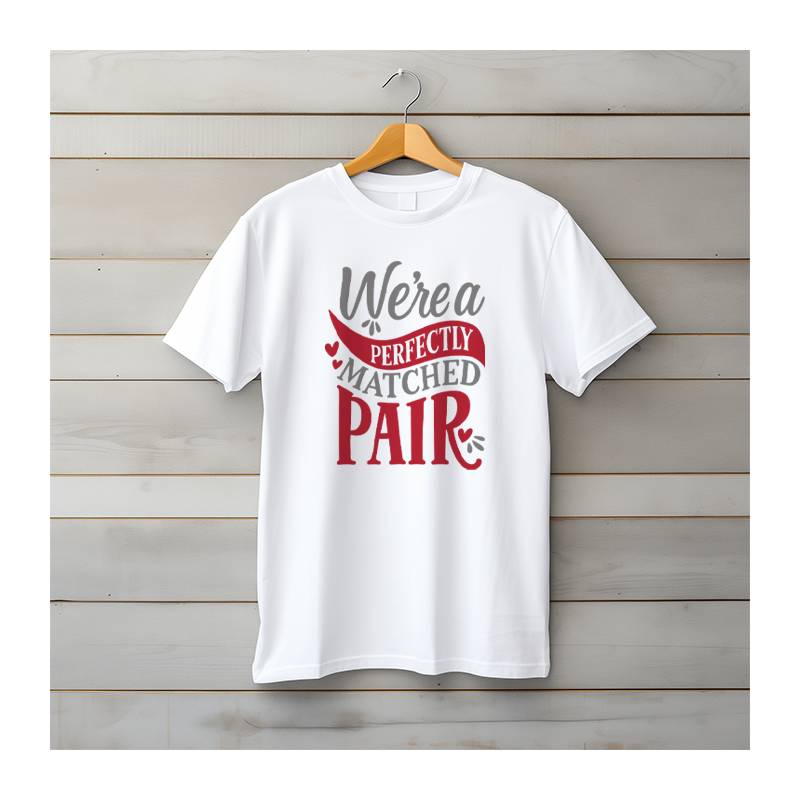 Unisex white t-shirt with the message "We're a Perfectly Matched Pair".