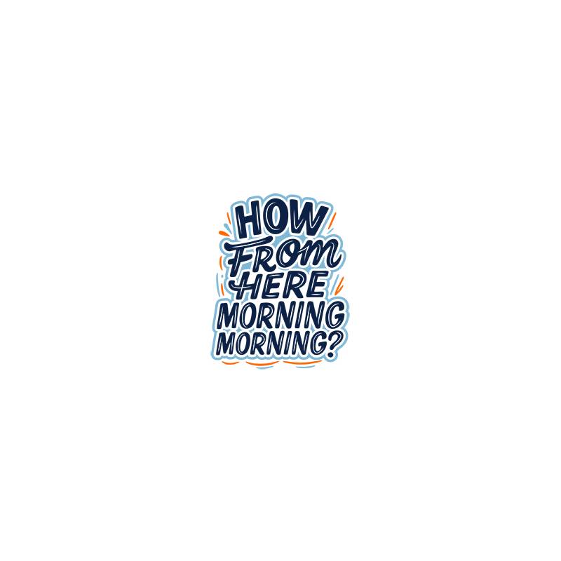 White ceramic mug with the message "How From Here Morning Morning".